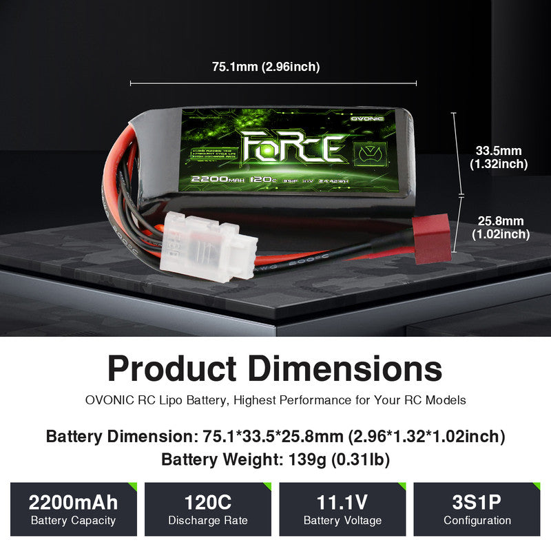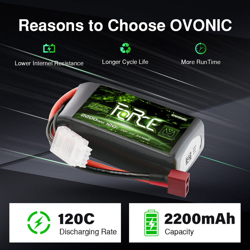 Versatile Compatibility: OVONIC 3S 2200mAh 120C LiPo provides excellent power for high-speed runs, smooth control, and extended flight times for a variety of RC car, trucks, RC planes, and RC vehicles. Such as TRA Rustler 4X4 VXL, Axial SCX10 II, HPI Racing Sprint 2, and Yokomo YD-2. And also compatible with 3-4 Channel RC Planes, such as Flite Test FT-22, E-flite Apprentice S 15e.