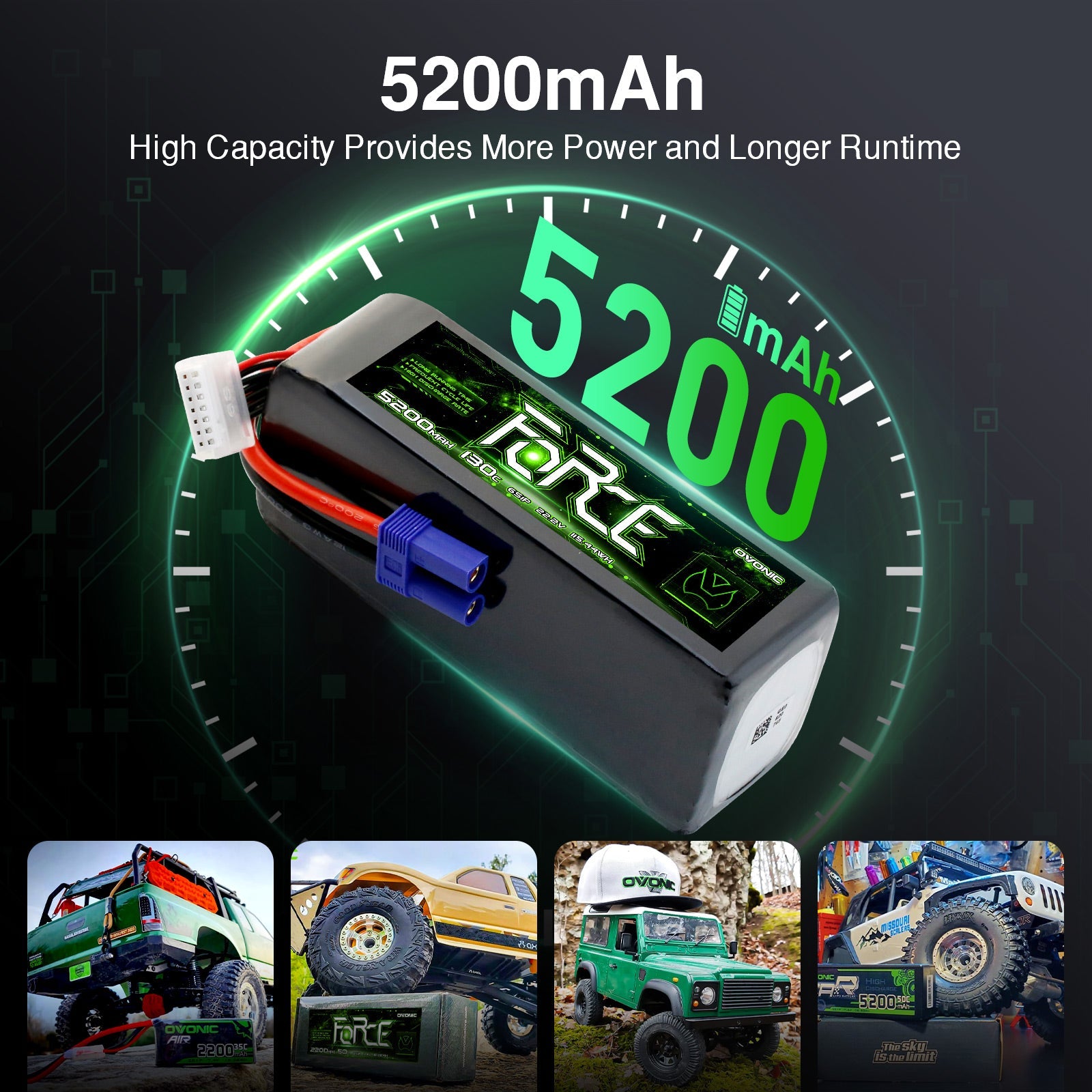 Max Capacity for Endurance: The generous 5200mAh capacity provides long, satisfying runtimes for extended flight or driving sessions.