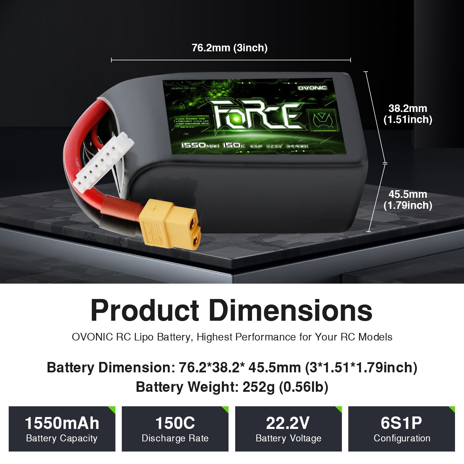 1 x OVONIC Force Series 1550mAh 150C 6S LiPo Battery with XT60 Plug