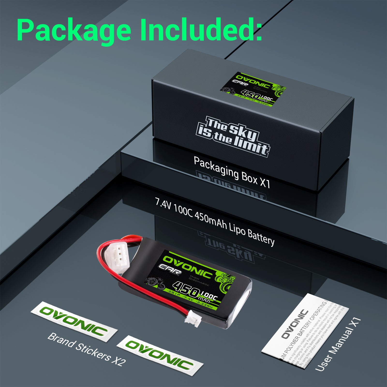• 1 x OVONIC 2S 450mAh 7.4V 100C Softcase LiPo Battery with PH2.0 Plug