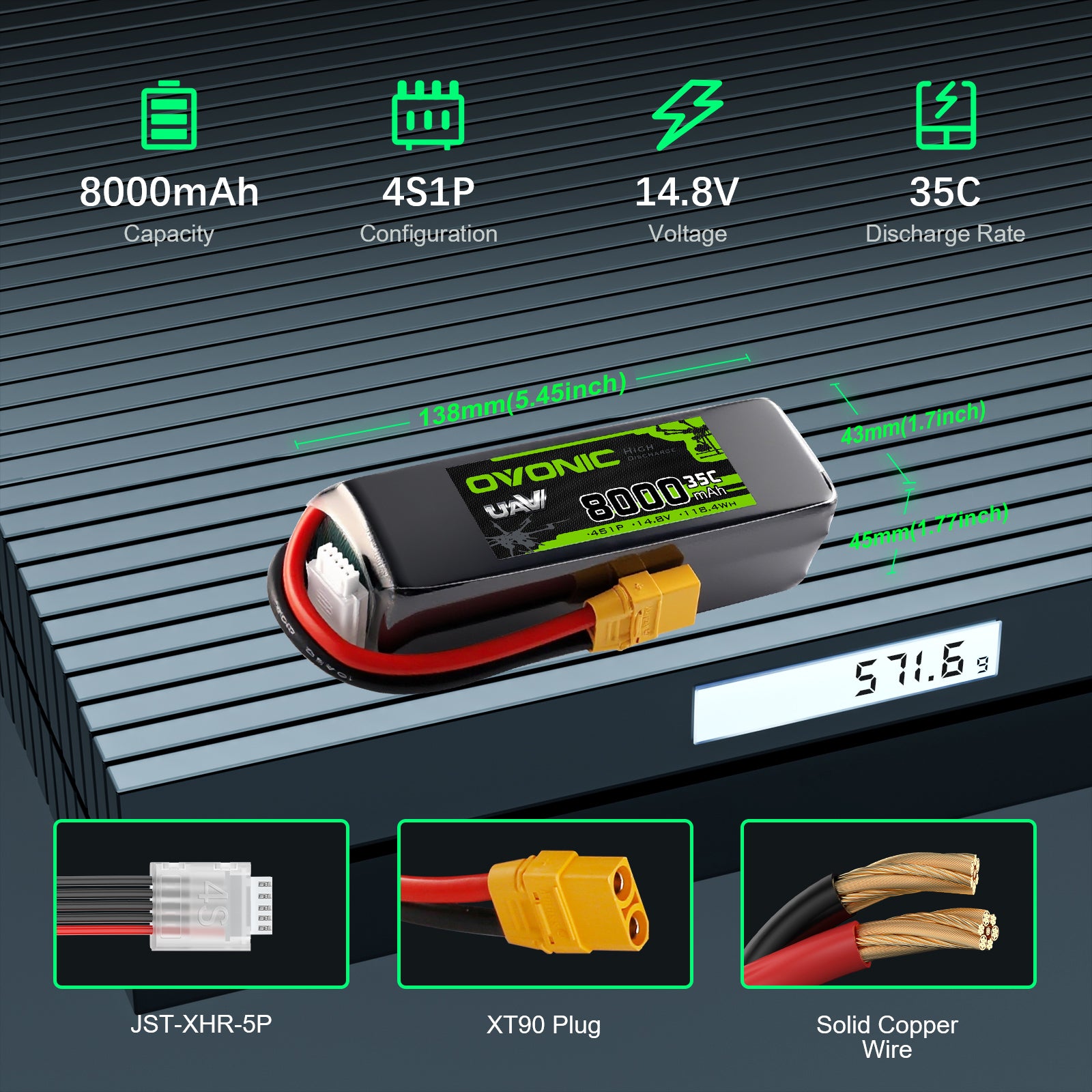 Ovonic 4S 8000mAh 35C 14.8V LiPo Battery w/XT90 Plug